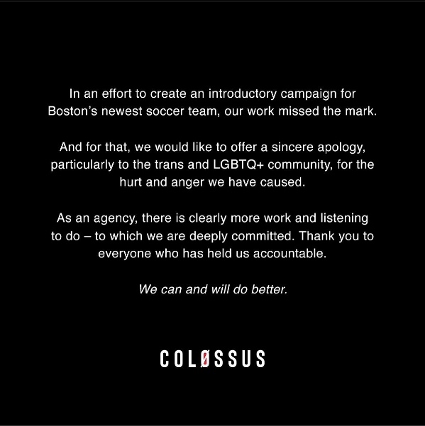 To say this announcement fell flat would be an understatement. In fact, reactions were so negative that the club, as well as Colossus, the creative agency behind the rollout, issued an apology for the campaign and the initial launch video has been deleted from the club’s social media.