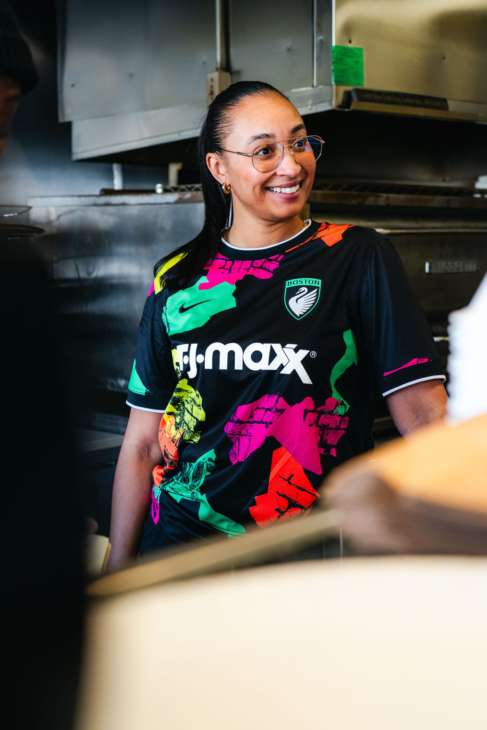 The Legacy highlighted local spots and outfitted different Boston residents as part of its jersey campaign, choosing leaders and advocates involved in the community and the city's sports scene. Allston/Brighton native Shantell Jeter, pictured below, was photographed at Rock City Pizza. She is the founder of You Got it Girl, a program dedicated to empowering young girls through sports and wellness.