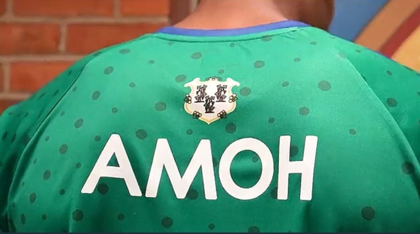 Finally, the bottom of the kit features a white swoop with a dark blue bottom, sporting a pattern similar to that of last year’s kit. The full kit will also feature blue shorts and green socks.