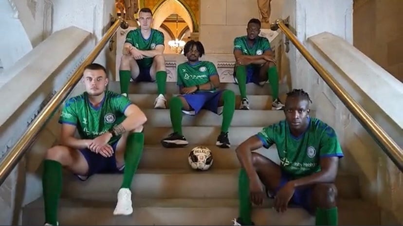 Featuring several nods to the state capitol building just down the road from Trinity Health Stadium, the kit features an all-green look with a blue trim around the sleeves and neck.