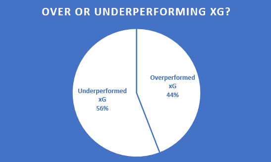 By the numbers they underperformed their expected goals about 56% of the time. Not ideal, but not the worst - especially given the sample size.
