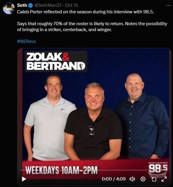That’s why I took particular exception to the way Caleb Porter framed his teams year in a recent interview on 98.5 The Sports Hub. The answer of interest occurs at 1:55 of this clip, but I’ve also typed it below.
