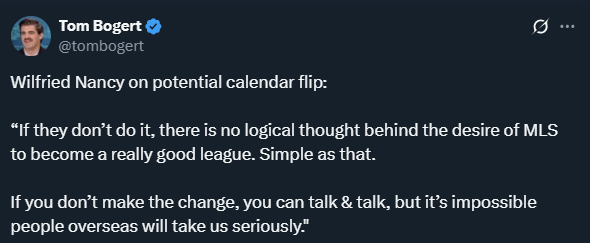 There’s certainly something to be said about that aspect of the change. Part of the league’s struggles to establish global supremacy no doubt has to do with the fact that players coming from the most talent-rich clubs/areas in the world either need to join MLS part-way through their previous club’s season OR part-way through their new club’s season.