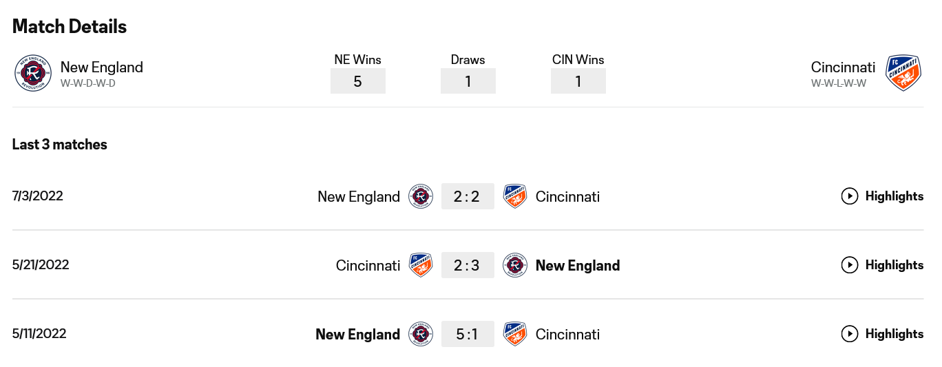 This, from MLS’ game preview, shows that even despite the Revs’ lackluster 2022…they still dominated Cincy including a blowout Round of 32 win in the US Open Cup thanks to a Carles Gil hat trick.