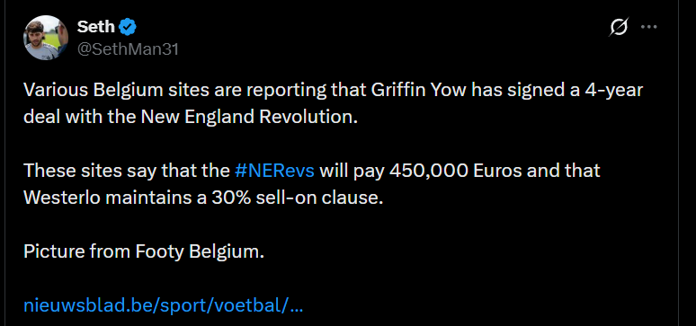 On top of the reported €450,000 fee to acquire Yow from Westerlo, the Revolution had to send an additional $125,000 in General Allocation plus the club’s second round pick in the 2027 MLS SuperDraft to the Vancouver Whitecaps to acquire Yow’s Discovery Priority.