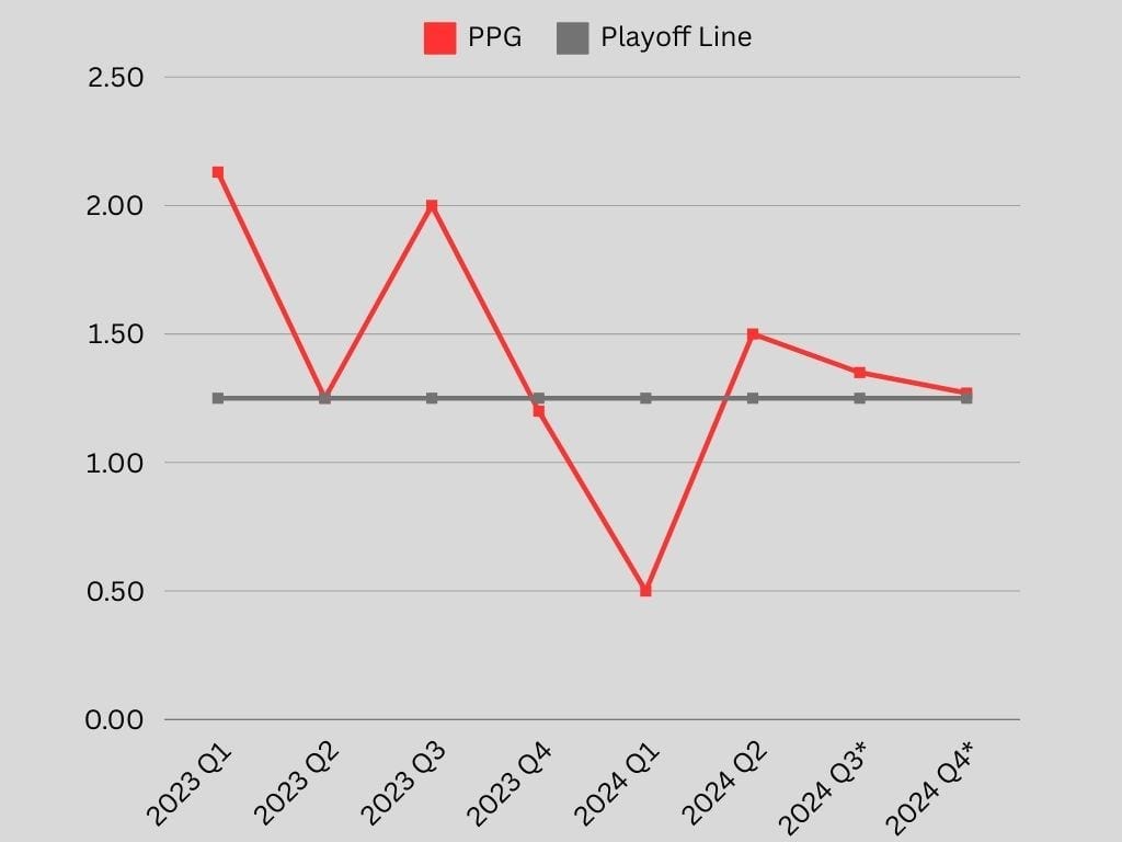 Despite the narrow miss, the Revs were above the 1.25 points per game playoff line target and showed a 200% improvement in Q2 from Q1 in terms of total points earned.