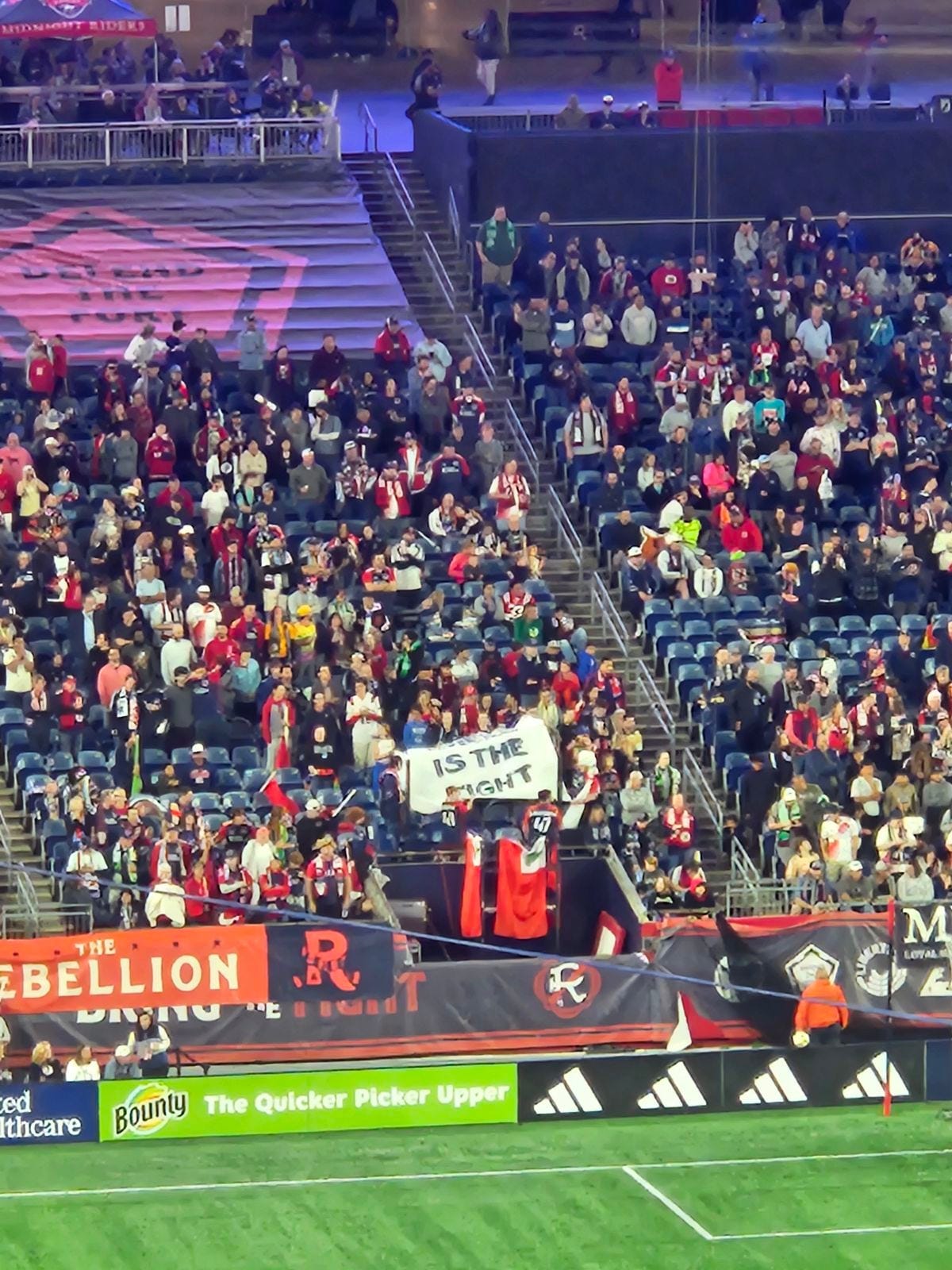 Fans in the fort expressed their frusteration with the team with a sheet/sign that said where is the fight in the first half. A white flag was waved as well.