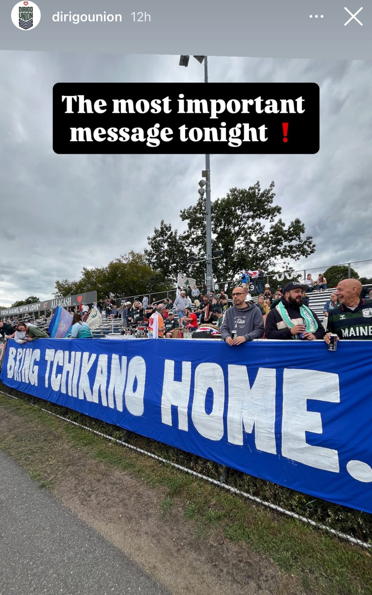The Dirgio Union presented an important statement at Saturday’s game: “Bring Tchikano Home.”