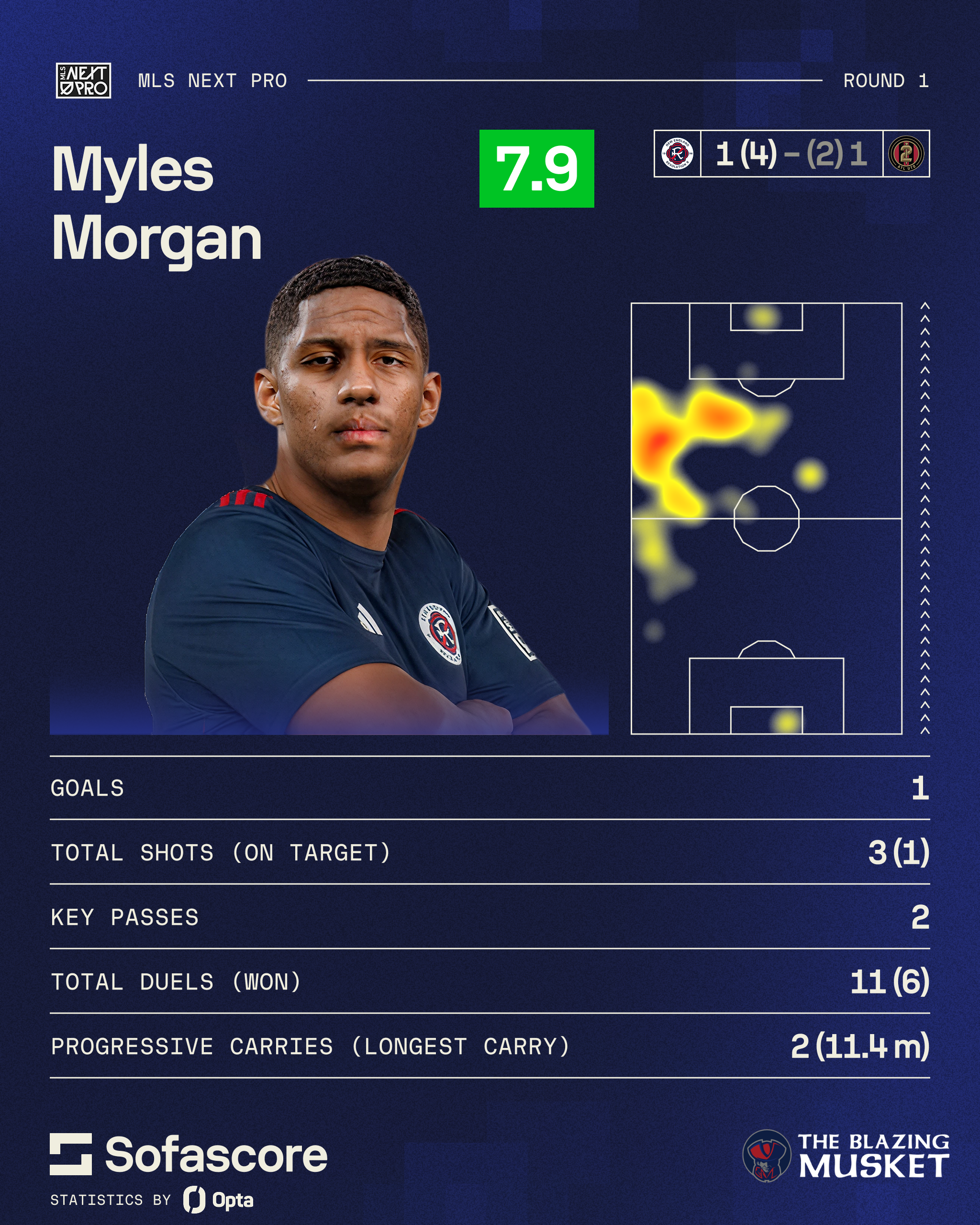 After several attempts to claw back into the game, Morgan got the job done. In the 70th minute, Oliveira broke down the right flank and slotted the ball to the forward just outside the mouth of the goal as Morgan tapped it in to net his first goal with New England.