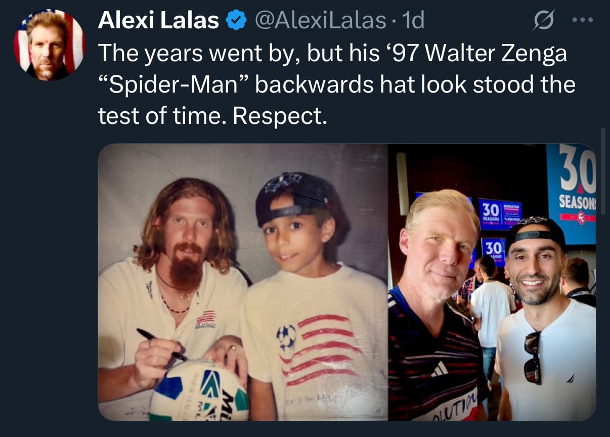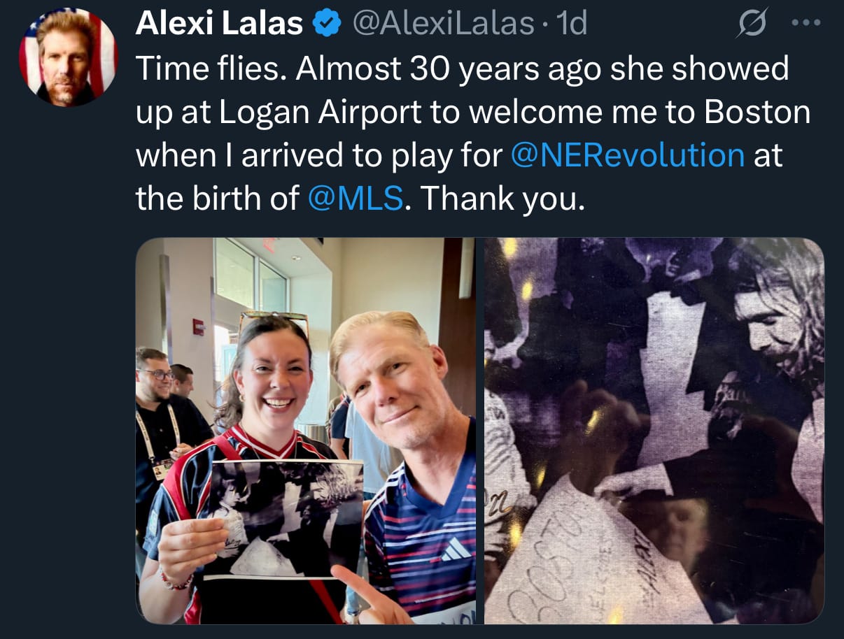 Lines were long—though they moved quickly—as fans looked to take a photo, snag an autograph, or share a memory. Alexi Lalas spoke to a pair of fans who first met him during the early years of Major League Soccer.
