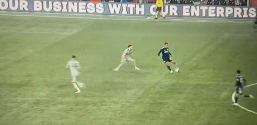 The clip is also notable because Wood stretches the field to create space for Gil and Borrero. Wood gets his head on the cross, but isn’t able to get his attempt on frame.