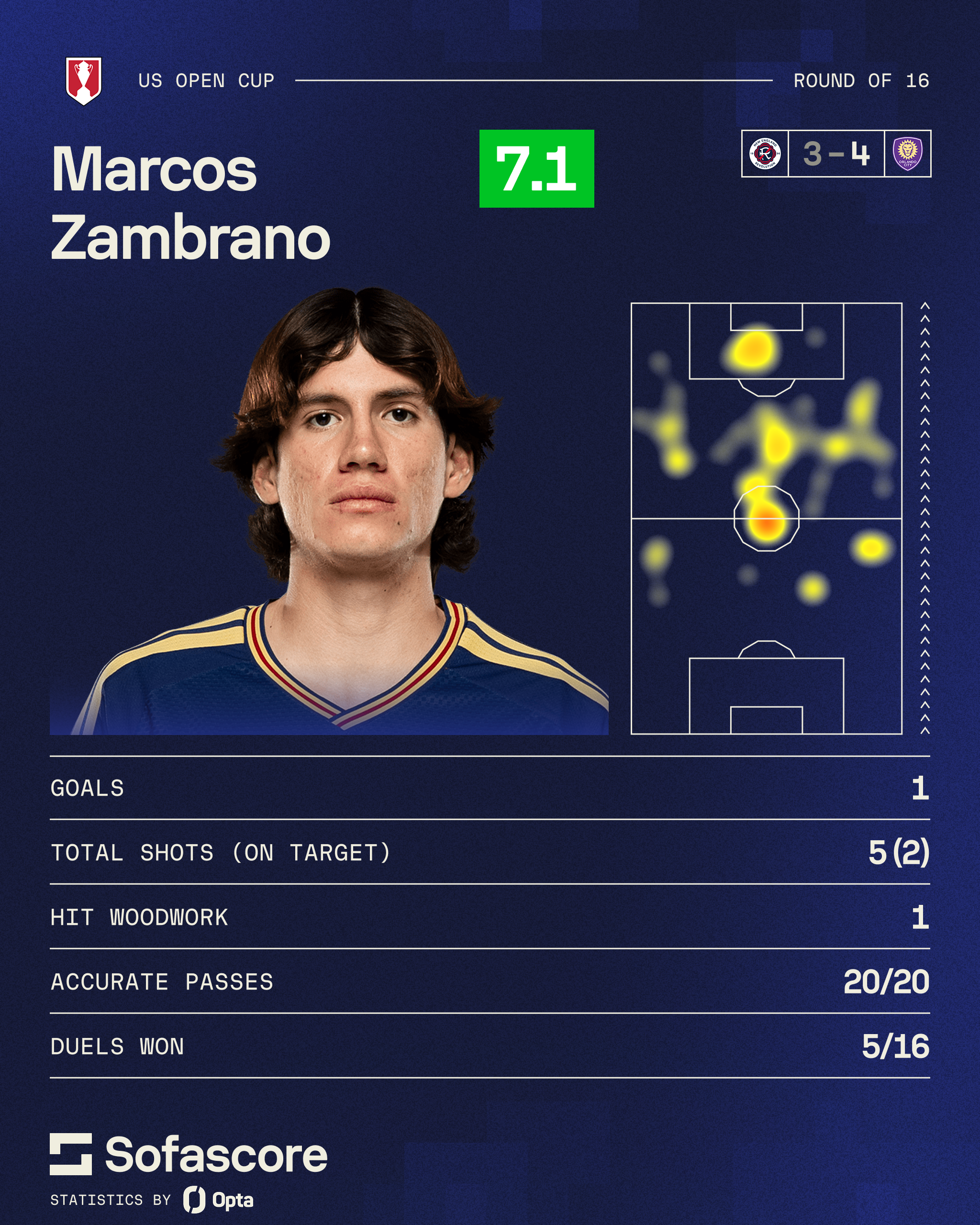 Zambrano, who is on loan to the Revs from Real Salt Lake until Jul. 13, was goal-dangerous last night. His performance gives confidence that he could provide relief up top, a spot with little depth at the moment.