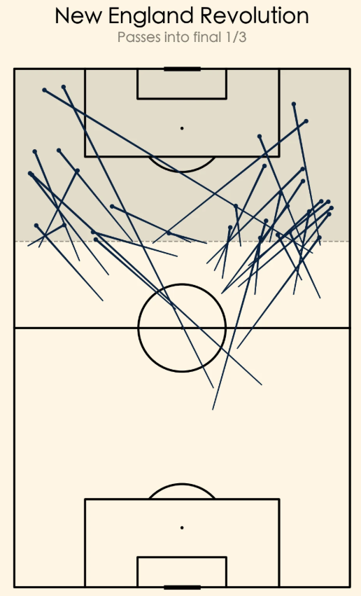 So far this season, the Revs haven't found much ability to create centrally in the attacking third or to move their build-up play from their half into the opponent's via the central area. It's a critical space on the field to operate in and exploit spaces when they appear. All successful attacks must inevitably make their way into the central area of the field because of the location of the goal.