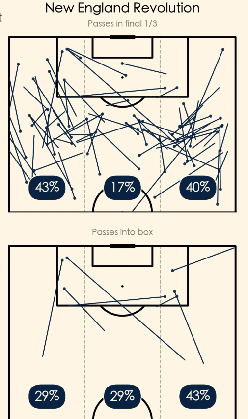 But are the Revs getting enough players into the central areas or are they not probing with passes in there often enough?