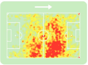 Here is a heat map of Gil’s positioning throughout the 2025 season.