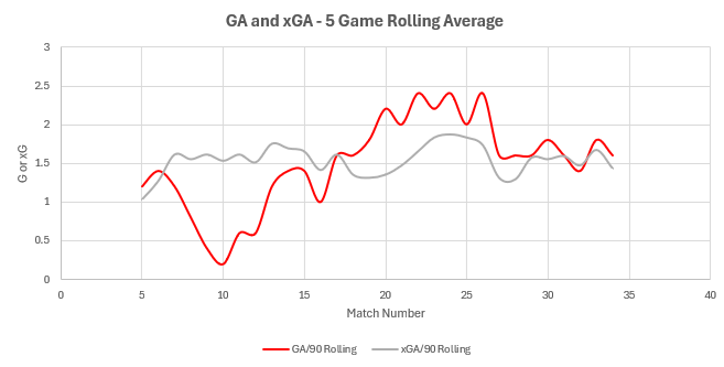 Things unraveled as the season went along, but the Revs conceding 51 goals in 2025 (league average was also 51) sure beats a nearly record-setting 74 goals conceded the year prior.